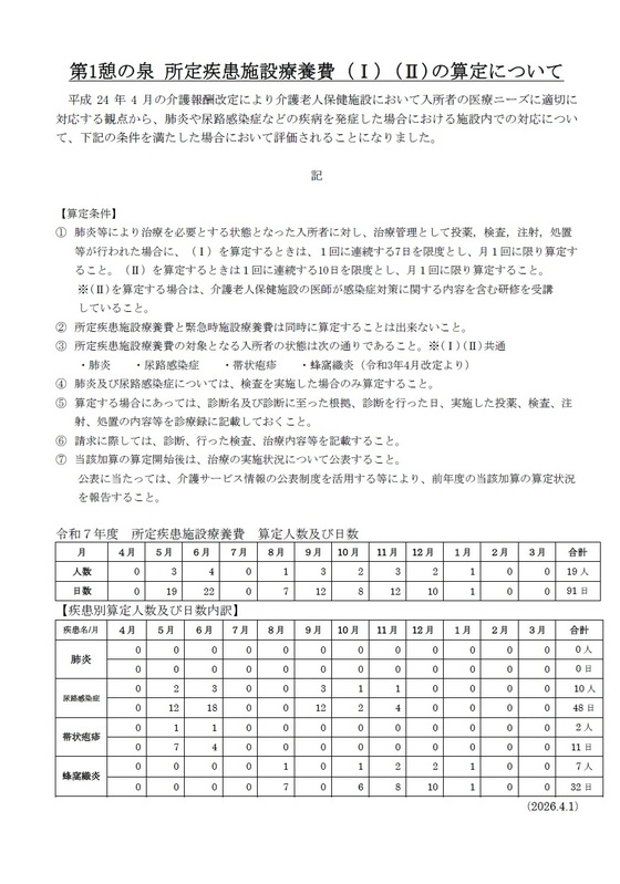 第1憩の泉 所定疾患施設療養費算定のお知らせ